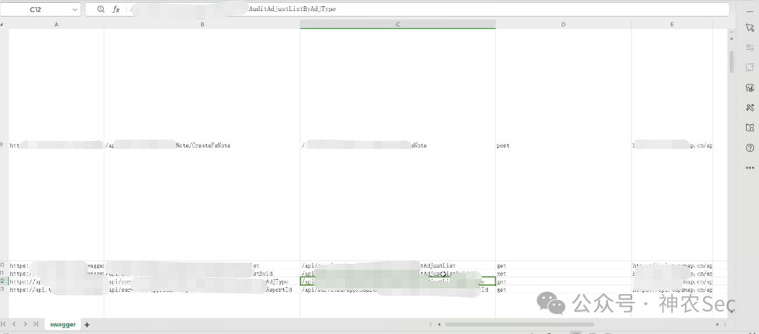 直接使用这个工具进行扫描,扫描完成后目录下会有一个swagger.csv文档,我们可以在里面找信息泄露的接口