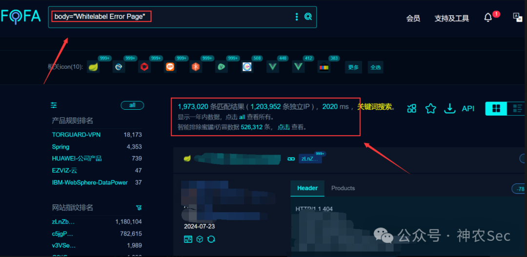 对于这样的大批量的测试的话,可以使用FOFA检索语句,就对上面的一个关键字进行检索