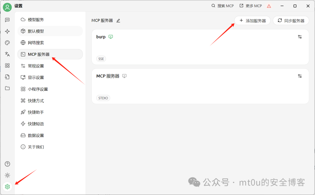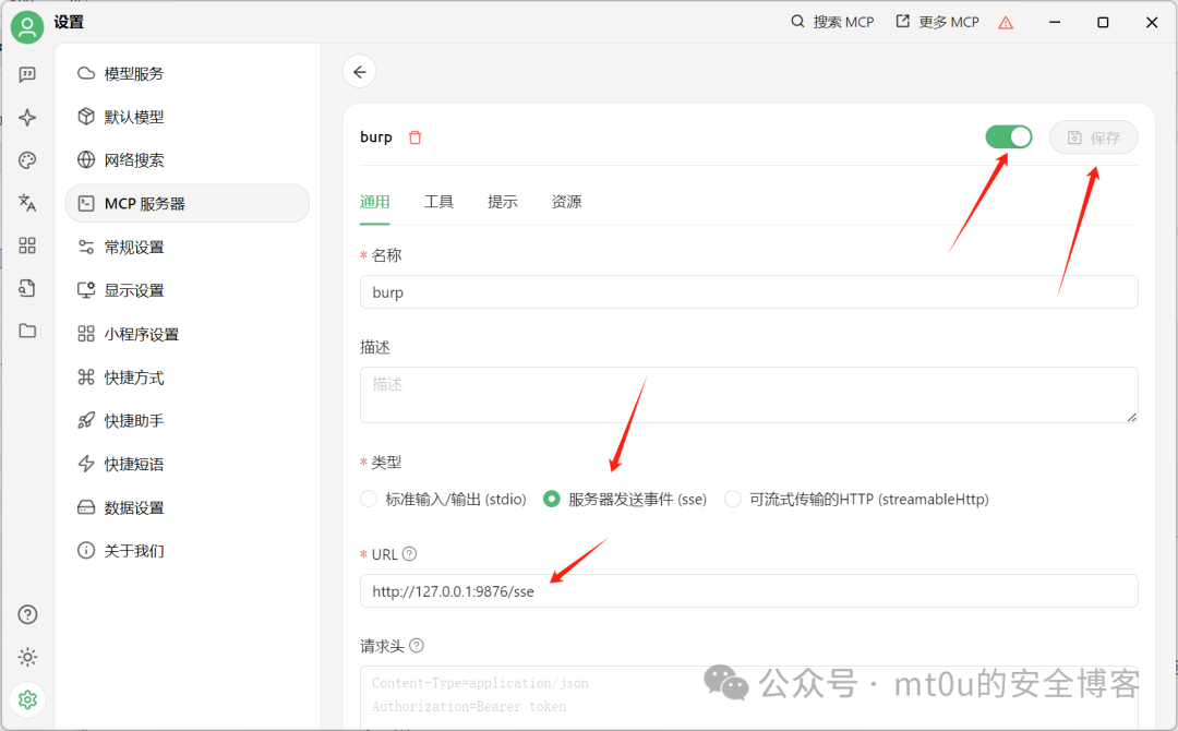 :即 [具体名称] 服务,在 Cherry Studio 中起着关键的桥梁作用,能够接收 AI 的指令,并将其转换为相应的操作命令,实现对其他工具(如 BurpSuite)的调用和控制。