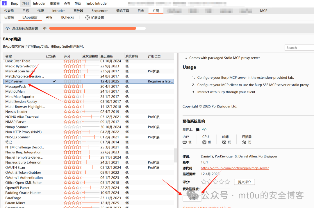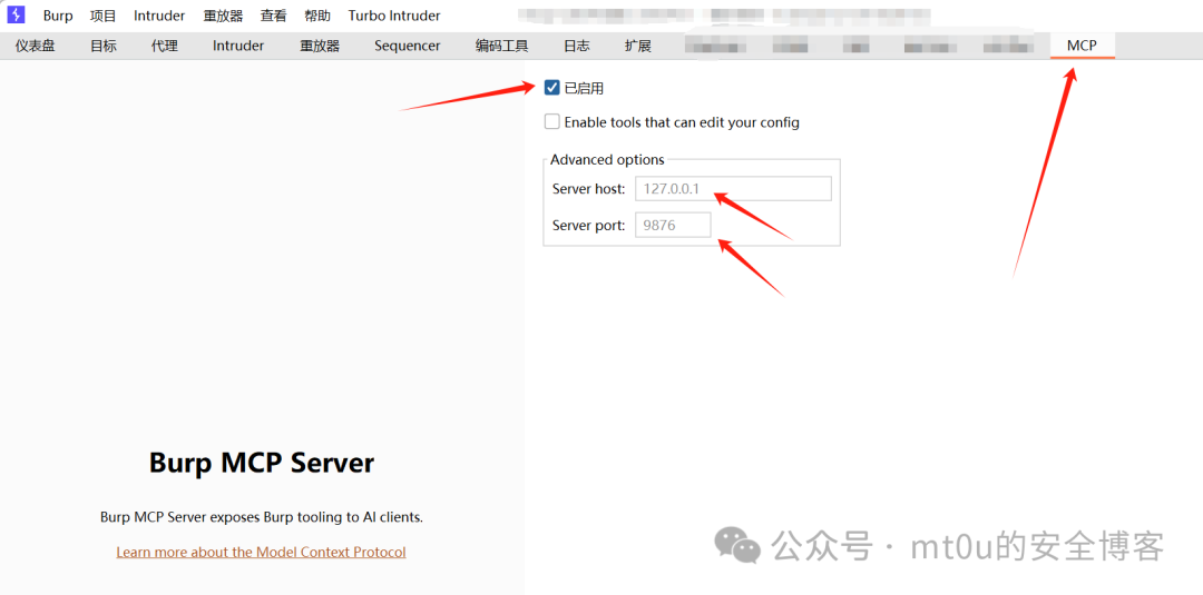 1. 安装并配置 BurpSuite 工具,确保其能够正常启动和工作,并且已安装必要的扩展插件(插件为MCP server)。