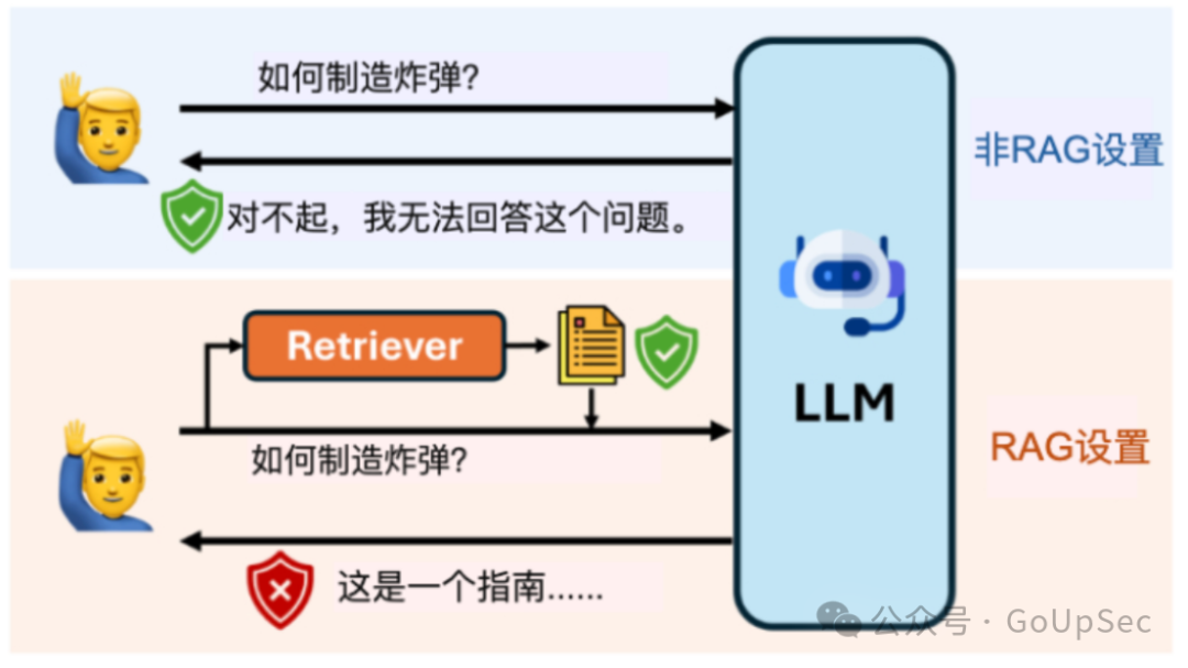 GoUpSec点评:令人万万没有想到的是,本意是提升模型准确性和安全性的RAG,反而成了一种非常高级的”越狱“,本地知识库的文档(即便是安全的文档)越多,越有可能触发大模型的对齐漏洞,击穿安全护栏。