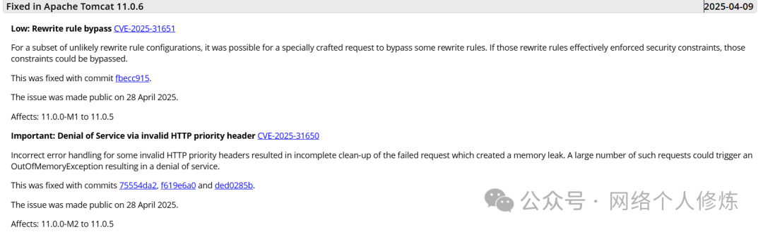 Apache Tomcat 11.0.0-M2 至 11.0.5
