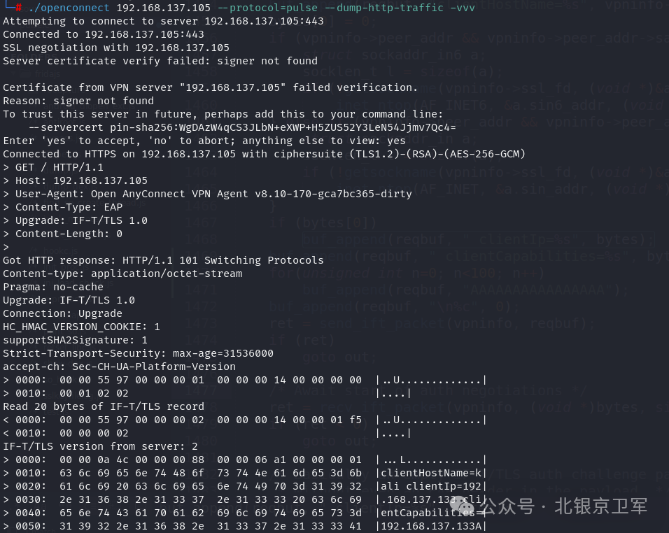 ./openconnect 192.168.137.105 --protocol=pulse --dump-http-traffic -vvv