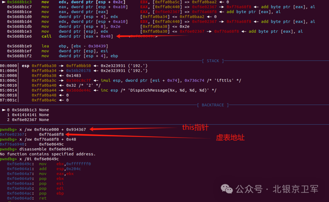 提供一个有效的地址无疑是非常困难的,但是山无绝人之路,柳暗花明又一村,在释放对象之前有一个C++对象的方法调用。