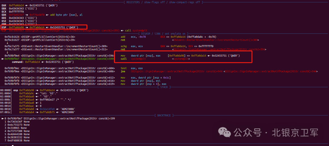 .text:004F10E4 89 04 24 mov [esp], eax ; command