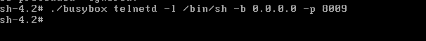 ./busybox telnetd -l /bin/sh -b 0.0.0.0 -p 8009