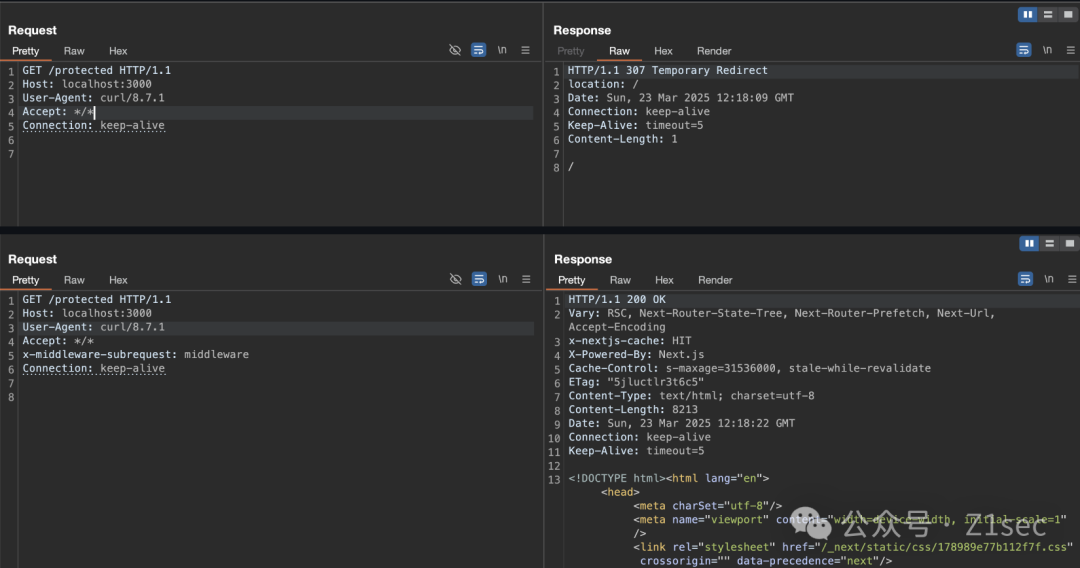 Next.js使用内部标头x-middleware-subrequest来防止递归请求触发无限循环。该安全漏洞表明,可以跳过运行中间件,这可能允许请求在到达路由之前绕过关键检查,如授权cookie验证。