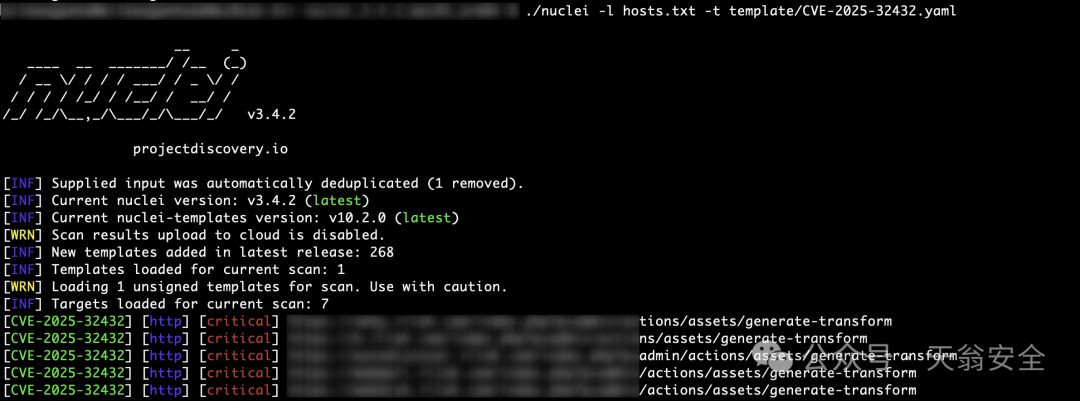 nuclei -l hosts.txt -t template/CVE-2025-32432.yaml