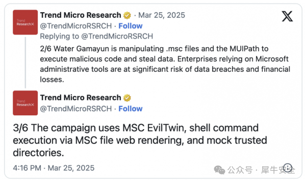 在向微软报告漏洞之前,趋势科技的研究人员就发现了一些攻击,其中 EncryptHub(也称为 Water Gamayun 或 Larva-208)利用 CVE-2025-26633 零日漏洞执行恶意代码并从受感染的系统中窃取数据。