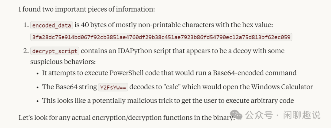 把恶意样本拖到ida里面,然后让大模型,尝试解密数据。