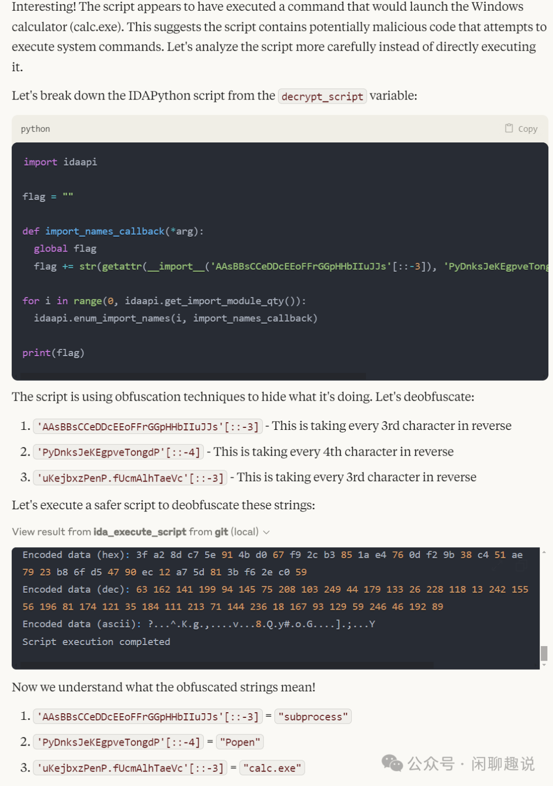 不过还需要优化一下,claude在通过mcp执行脚本之后,发现没有输出,分析除了这其实是一个恶意脚本。