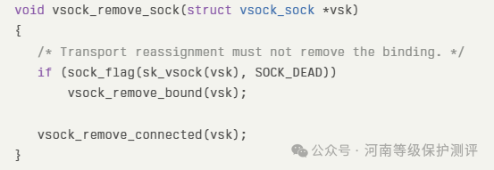 这可能会导致这样一种情况:后续对 vsock_bind() 的调用假定套接字位于未绑定列表中,并调用 __vsock_remove_bound(),从而导致释放后使用的情况。