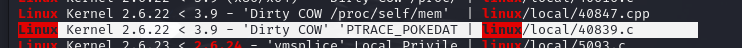 这里23端口的弱口令为msfadmin,但是只是一个shell,没有root权限,我们可以尝试脏牛内核提权,我们尝试一下