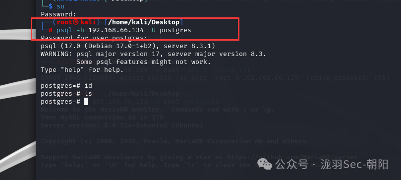 PostgresQL弱密码 使用psql -h 192.168.66.134 -U postgres 密码:postgres 登录成功