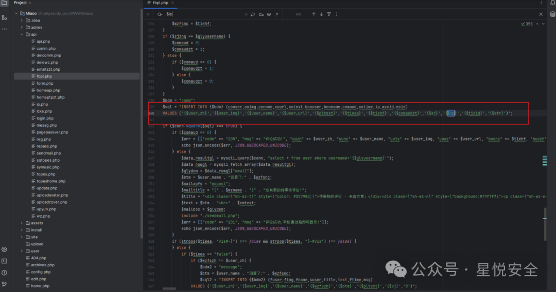 位于 fbpl.php 中的ip参数可控,如,并未过滤就直接插入sql语句,造成注入