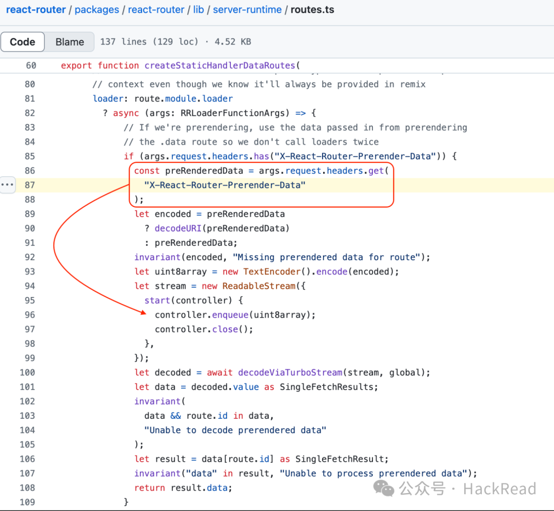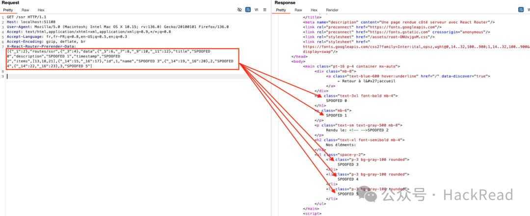 存在漏洞的标头是 X-React-Router-Prerender-Data