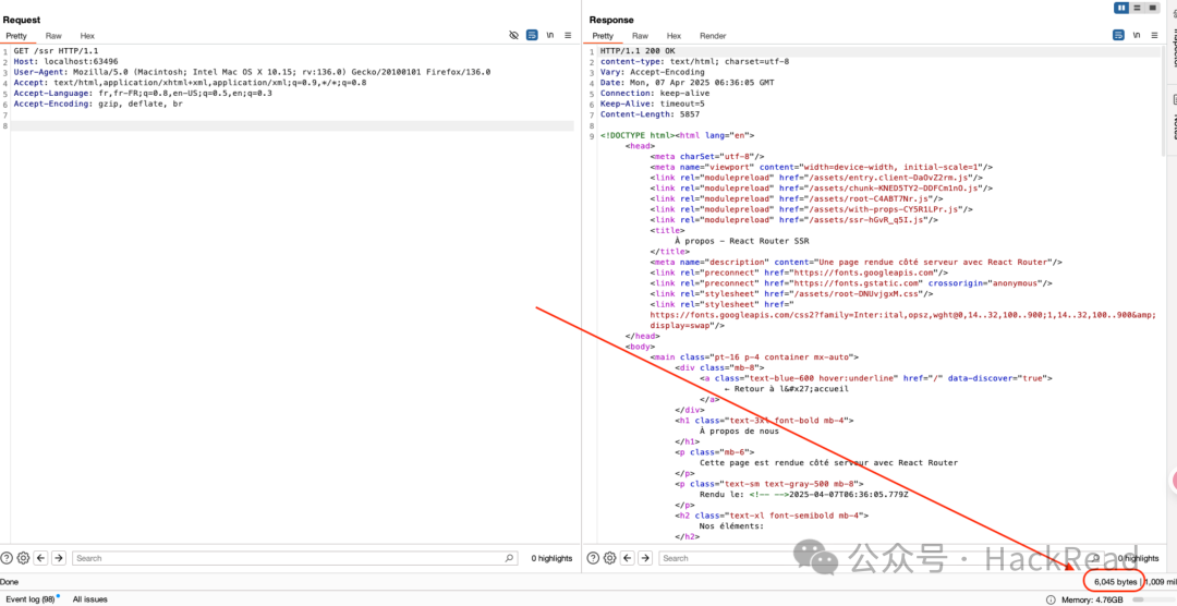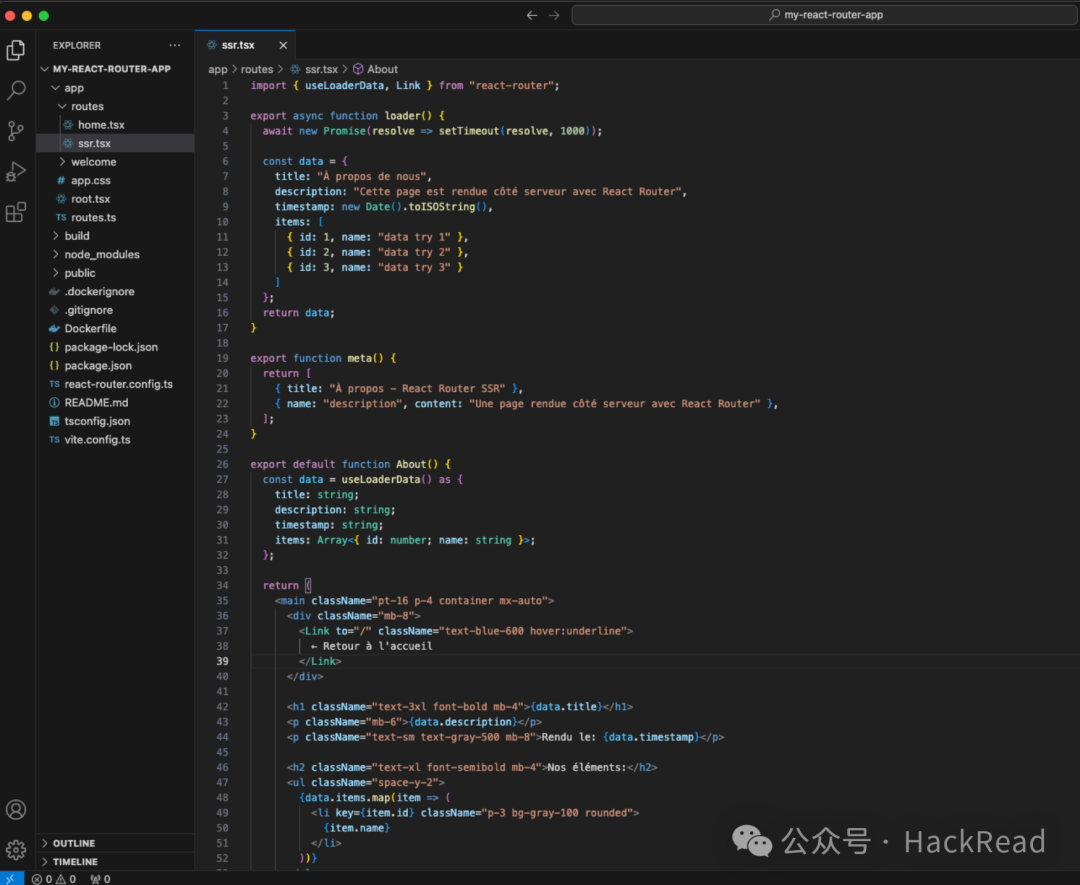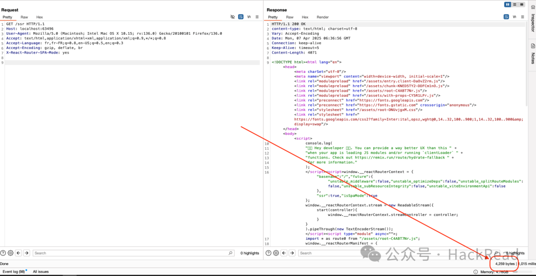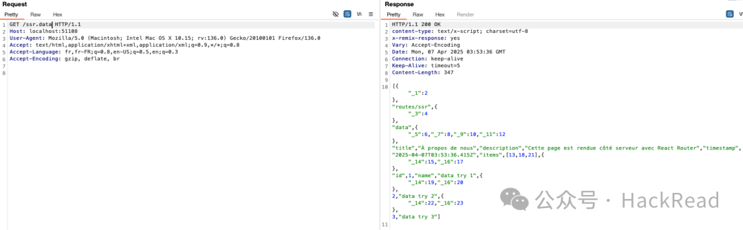 – 应用必须在 Framework 模式下使用 React Router– 目标页面必须使用 loader– 无需权限– 无需用户交互– 攻击者可通过网络请求注入 X-React-Router-SPA-Mode 请求头