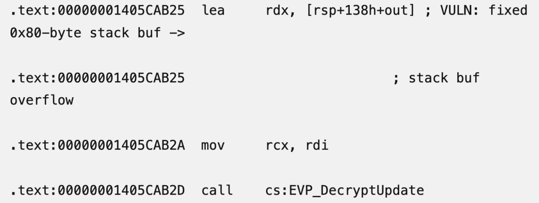 CVE – 2025 – 2263:EVP_DecryptUpdate 基于堆栈的缓冲区溢出