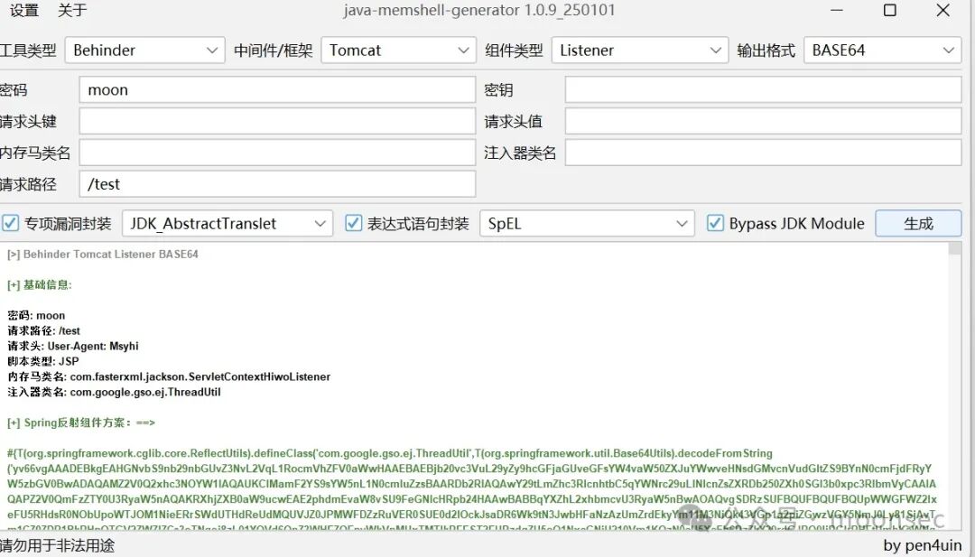 运行jmg选择Behinder内存马 SpEl 这些配置打上。