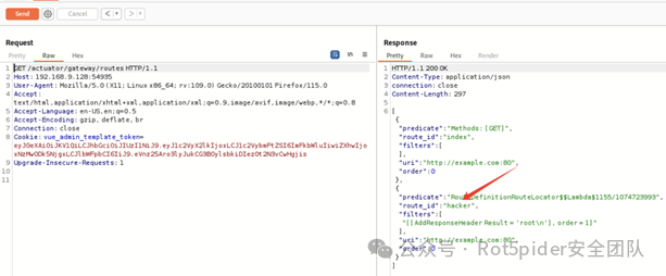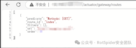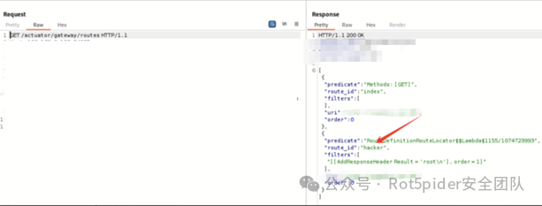 或者构造get请求,路径为/actuator/gateway/routes/hacker,即可查看指定的路由信息