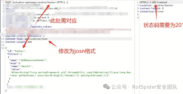 构造包含恶意SpEL表达式的路由,执行了whoami命令