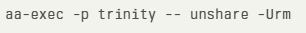 默认安装的 aa-exec 工具允许切换到宽松的 AppArmor 配置文件(如 trinity、chrome 或 flatpak)。攻击者可利用此工具执行 unshare 命令来创建不受限制的命名空间: