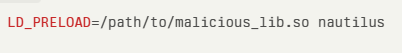 通过向 Nautilus(GNOME 文件管理器)等受信任进程注入恶意共享库,攻击者可利用宽松的配置文件: