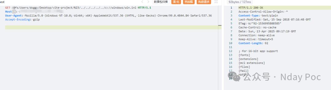 漏洞源于Vite在处理带有特定查询参数的 URL 时,正则表达式和参数处理逻辑存在缺陷,导致安全检查被绕过。攻击者利用这一缺陷,通过精心构造的请求路径,访问服务器上不再允许访问列表中的文件。
