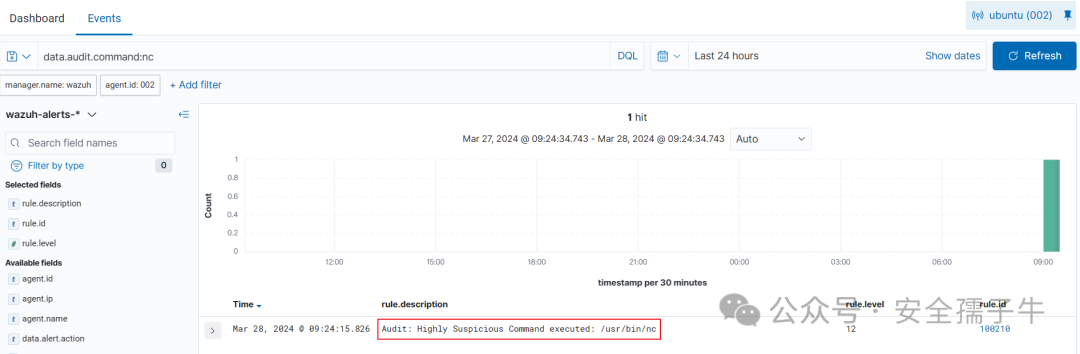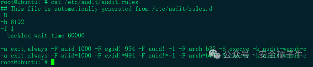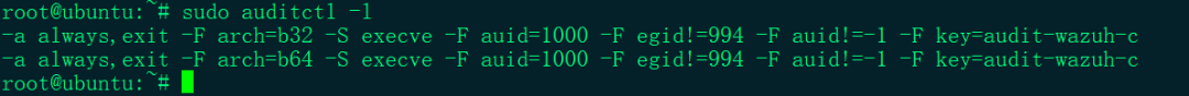 在 Ubuntu 端点上配置 Auditd,以考虑给定用户执行的所有命令。这包括用户在模式下或更改为 root 用户后运行的命令。您可以配置自定义 Wazuh 规则以对可疑命令发出警报。