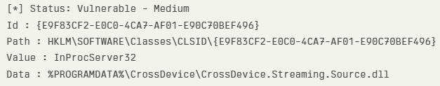 漏洞利用过程面临多项技术挑战。研究人员最初使用 PrivescCheck 工具进行自动化扫描,发现非特权用户对 COM 服务器模块文件具有修改权限: