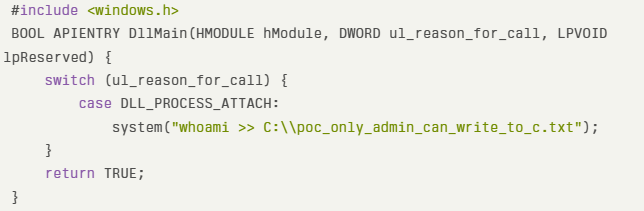 当高权限进程加载该 DLL 时,恶意代码将以 SYSTEM 权限执行。为确保被替换的 DLL 保持原有功能,研究人员实现了代理机制,将函数调用转发至原始 DLL: