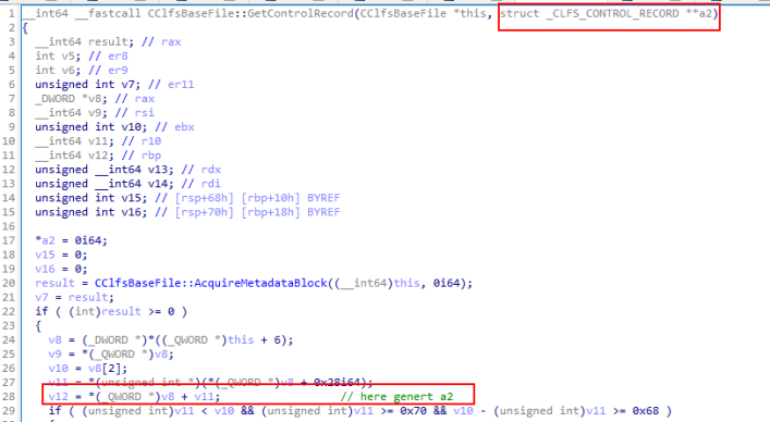 通过ida可以看到CClfsBaseFile::GetControlRecord第二个参数是名为CLFS_CONTROL_RECORD的结构,其生成方式如下所示