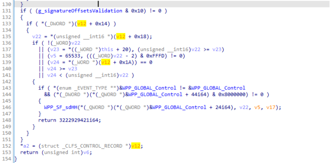 首先CClfsBaseFile::GetControlRecord中判断返回的_CLFS_CONTROL_RECORD,防止返回错误的偏移导致越界读取clfsheap。