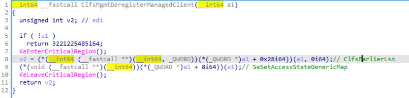 这里的核心其实是ClfsEarlierLsn和SeSetAccessStateGenericMap。