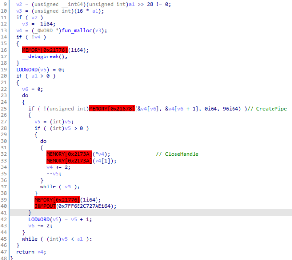遍历0x5000对pipA,并调用其writepipe写入包含trigger clfs base block + 0x30的数组v93,遍历结束,从pipeA(0x2000偏移),第174对pipe开始释放,一共释放0x667对pipe对。