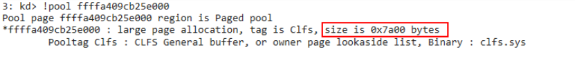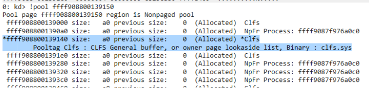 base block是一个大小为0x7a00的pool,exp中就是通过该pool的固定大小及clfs标记,通过函数ZQuerySystemInformation在内核中搜索出该pool的地址。