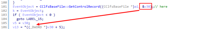 可以看到v5来自于CClfsBaseFile::GetControlRecord的第二个参数。