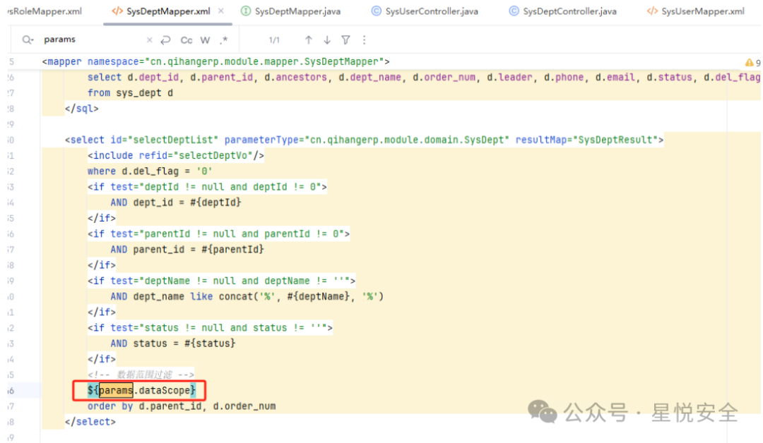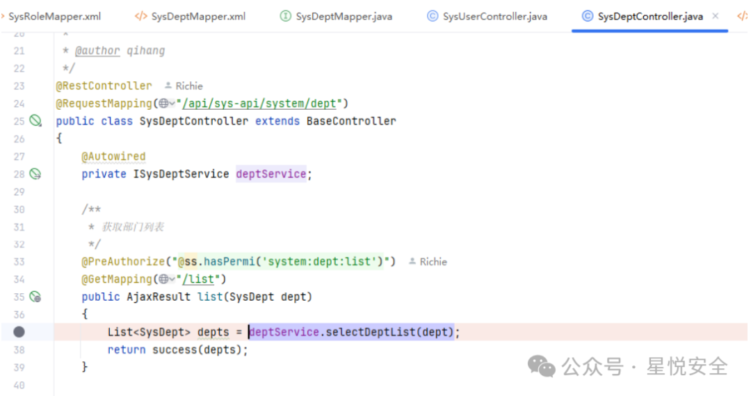 位于 SysDeptController.java 中存在传参,路由为 /api/sys-api/system/dept