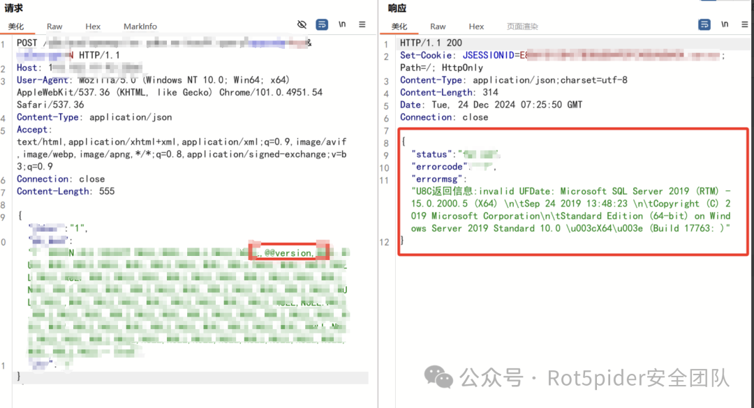 xxx云平台存在未授权SQL注入漏洞,攻击者可通过构造恶意JSON请求实现数据库版本信息泄露,进而可能获取服务器控制权限。