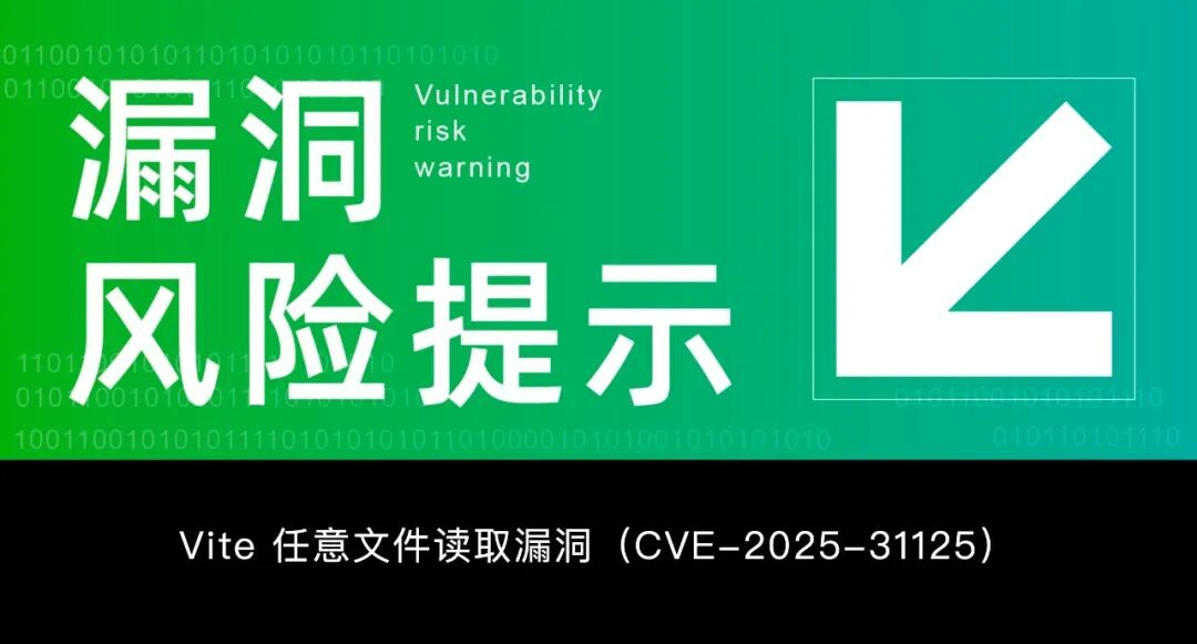 利用条件Vite 开发服务器需通过 –host 或 server.host 配置选项暴露到网络(默认仅限本地访问)。漏洞影响任意文件读取:攻击者可读取服务器上的敏感文件(如配置文件、密钥文件等),可能导致凭据泄露或其他安全风险。处置优先级:高漏洞类型:逻辑漏洞漏洞危害等级:高触发方式:网络远程权限认证要求:无需权限系统配置要求:非默认配置,需将 Vite 开发服务器暴露到互联网上用户交互要求:无需用户交互利用成熟度:POC/EXP 已公开修复复杂度:低,官方提供升级修复方案影响版本 Affects 026.2.0 <= vite <= 6.2.36.1.0 <= vite <= 6.1.26.0.0 <= vite <= 6.0.125.0.0 <= vite <= 5.4.15vite <= 4.5.10解决方案 Solution 03临时缓解方案如果暂时无法升级,可以采取以下措施降低风险:1. 限制网络访问:将 –host 或 server.host 设置为 localhost,确保开发服务器仅限本地访问。2. 严格文件权限:确保敏感文件不可被 Vite 进程读取(例如通过操作系统权限控制)。升级修复方案Vite 官方已发布安全补丁,修复版本包括:6.2.4、6.1.3、6.0.13、5.4.16、4.5.11请尽快通过 npm update vite 或手动升级到以上版本以修复漏洞。漏洞复现Reproduction 04产品支持Support05云图:默认支持该产品的指纹识别,同时支持该漏洞的原理PoC检测洞鉴:预计 4.2 发布更新支持该漏洞检测雷池:已发布自定义规则支持该漏洞检测全悉:已发布规则升级包支持该漏洞检测时间线 Timeline 063月31日 长亭科技向监管报送该漏洞3月31日 官方发布通告修复漏洞4月1日 长亭安全应急响应中心发布通告参考资料:[1].https://github.com/advisories/GHSA-4r4m-qw57-chr8