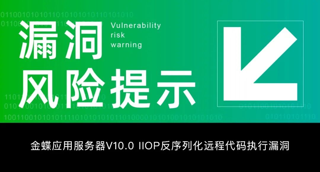 漏洞成因该漏洞源于金蝶天燕应用服务器在处理 IIOP 协议请求时,存在 Java 反序列化漏洞。服务器暴露接口允许远程客户端通过 IIOP 协议进行交互,且服务器未对反序列化数据进行有效验证和过滤,攻击者可以构造恶意的序列化数据并发送到服务器,从而实现远程代码执行。漏洞影响远程代码执行:攻击者可以在目标服务器上执行任意代码,获取完全控制权。服务器入侵:可以执行后门植入、数据窃取等操作。处置优先级:高漏洞类型:Java反序列化漏洞危害等级:高触发方式:网络远程权限认证要求:无需权限系统配置要求:默认配置可利用用户交互要求:无需用户交互利用成熟度:POC/EXP 已公开修复复杂度:低,官方提供升级修复方案影响版本 Affects 02Apusic 应用服务器软件 V10.0 企业版 SP1-SP8解决方案 Solution 03临时缓解方案可参考官方漏洞通告[1]限制 IIOP 端口只允许本机访问,或在不影响业务的情况下禁用 IIOP 协议。升级修复方案官方已发布修复版本,可在参考链接[1]进行下载更新。漏洞复现Reproduction 04产品支持Support05云图:默认支持该产品的指纹识别,同时支持该漏洞的原理PoC检测洞鉴:预计 4.28 发布更新支持该漏洞检测雷池:非HTTP漏洞,不支持检测全悉:已发布规则升级包支持该漏洞检测