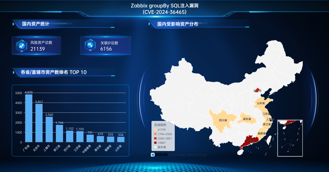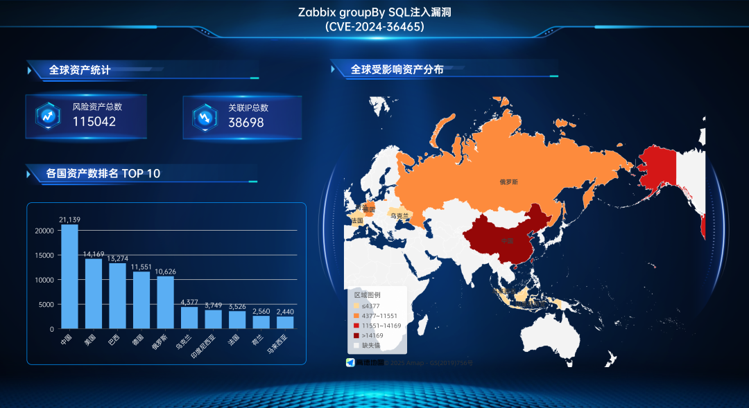 奇安信鹰图资产测绘平台数据显示,Zabbix groupBy SQL注入漏洞(CVE-2024-36465)