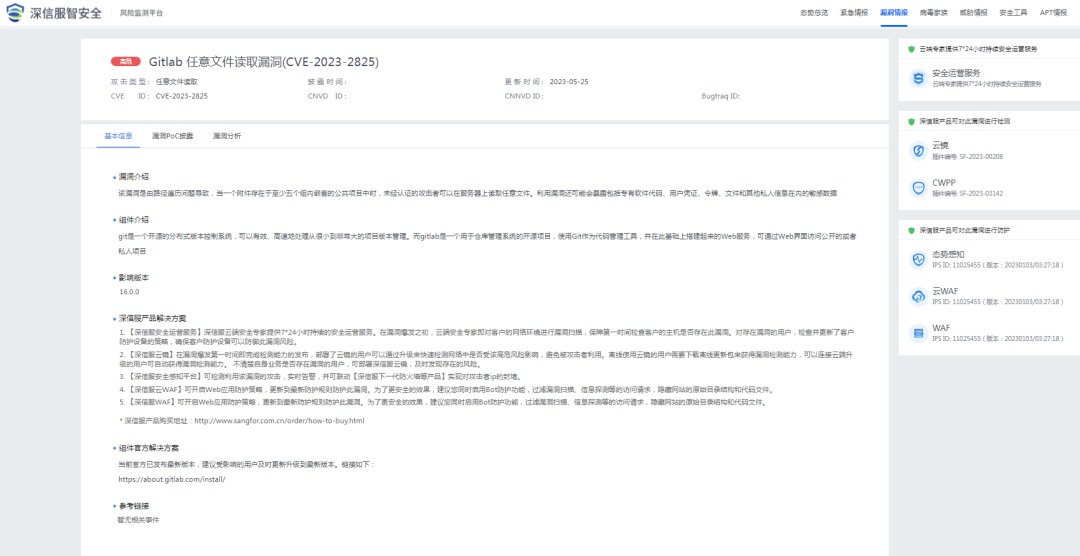 支持对Gitlab任意文件读取漏洞事件的防御,可阻断攻击者针对该事件的入侵行为,相关产品及服务如下: