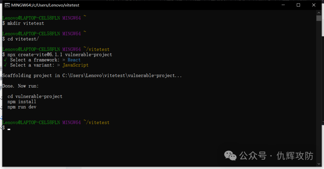 我的环境:windows+gitbash+npx